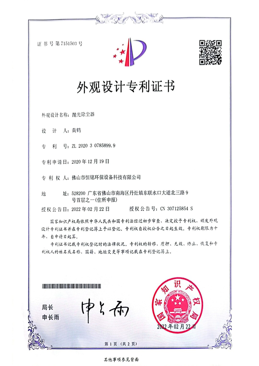 外观设计专利证书